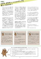 4なぜ今、NPOがソーシャルメディアを使うべきなのか?1日目誰もが参加できるスケーラブルな情報発信技術を用いて、社会的インタラクションを通じて広がっていくように設計されたメディアである。 個人と個人、個人と組織、組織と組織の間の情報発信が、ウェブサービスを経由することによってそれ自体が意味を持つコミュニティとなり、実社会に広く拡散され、影響力を持ち始めたメディア。twitterやfacebookなどのプラットフォームによって、個人間の情報発信が可視化されやすくなったことにより、SNS(Social Network Service)のネットワーク的な概念を超えて、新たなメディアとして浸透しつつある。かつてインターネットが一般的に利用できなかった時代、NPOは、電話・FAX・郵便を用いてコミュニケーションを行っていました。そしてインターネットの普及によって、その速度と範囲は何十倍、何百倍にも広がり、誰もが双方向に情報をやり取りできるソーシャルメディアが普及した事で、さらなる変革の時を迎えたと言えるでしょう。しかし、あまりに早いインターネットの技術革新に、多くのNPOは適応できていないのが現状です。年配者だけの小規模な団体では、パソコンも携帯もほとんど使わずに活動している事がしばしばです。問題が起こっている現場に最も近く迫り、その解決を目指すのが本来のNPOであるのなら、可能な限り高い優先順位を付けて、意識的にインターネット、ひいてはソーシャルメディアを、「したたかに使う選択肢」を持つべきではないでしょうか? 今やボランティア活動やNPO活動は、多くの企業がCSR(企業の社会的責任)活動の一環として協働が進み、多様化・高度化が進んでいます。そんな中にあって、資金力・技術力のついた活動は、よりメディアにも取り上げられ、インターネットを使う市民にも認知される流れが生まれ、その流れに乗れない活動は、その内容の良し悪しに関わらず、資金源・参加者不足に陥る可能性が高まります。一方で、大手企業や政府に対して批判的な主張を出す活動が認知されにくくなっている現実があります。環境破壊や人権侵害など、山積する社会課題の解決を目指すNPOにとって、ソーシャルメディアの理念(スピリッツ)と技術(スキル)を学び、より進んだ活用方法を獲得する事は、その解決のための速度と範囲を格段に広げる事につながると思います。この「ソーシャルメディアガイド」は、より多くのNPOが、それぞれのニーズに沿ってソーシャルメディアを活用できるようになることを願って作成しました。もし、このマニュアルと出会わなかったらTwitterをやる事もなかった、と言っていただけたら、このマニュアルを作った事は大いなる喜びとなります。ソーシャルメディアを、まだ活用していないNPOに普及する事が、複雑化・深刻化する社会問題の解決につながる事、さらには民主主義国家としての成熟につながる変化を促進する事を願ってやみません。まずはこのガイドの公式サイト「A SEED-TV」をじっくりながめてください。http://www.aseed-tv.orgソーシャルメディアとは(ウィキペディアより)ソーシャルメディアは、さながら「パブ(Public House)」です。多様な人が集い、情報を交換するあり方の進化形と言えるのではないかと思います。「信頼できる情報」と判断する基準を磨き、能動的・批判的に情報を取捨選択する力を磨けるのもソーシャルメディアでしょう。「知る力」を高める「知らなかった事を伝える」「多様な意見をぶつけ合う」このスピードと規模を爆発的に高めたのがソーシャルメディアです。個人であっても、中央政府や大企業に発信力に対抗する可能性を秘めているのがソーシャルメディアと言えます。「伝える力」を高める世論は数の論理が大きく作用します。何かを変えるにあたって、どれだけの人が、その変化を求めているのかを「視える化」し、しかるべきタイミングで社会的合意へとつなぐための手段の一つとして、ソーシャルメディアは大きな可能性を秘めています。今、人々がいかにソーシャルメディアを社会変革に活用していくかが問われているのではないでしょうか。「変える」力を高める